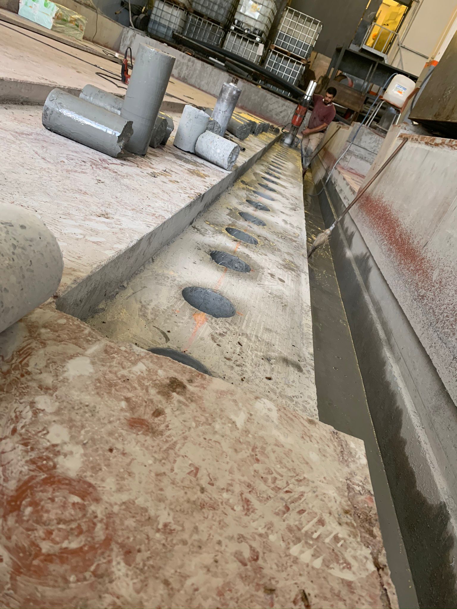 Kalın beton döşemelerde sıralı karot delikleri (perforasyon) açarak, büyük beton blokların kontrollü ayrılması ve güvenli tahliyesi hizmetini sunuyoruz.